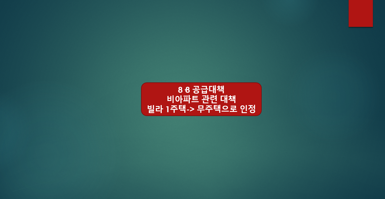 8.8 공급 대책에서 가장 눈에띄는 점은 수도권 지역의 그린벨트를 대규모로 해제하여 주택공급을 늘리겠다는 부분입니다. 하지만 그린 벨트 해제를 통한 주택공급의 경우 최장 10년 이상의 시간이 소요되는등 당장의 집값안정과는 거리가 멀다는 지적이 있습니다. 이에따라 정부는 실질적인 서민 주거 안정을 위한 정책도 함께 내놓았는데, 그 중 하나가 일부 빌라 주택 소유자들을 무주택자로 인정해주겠다는 정책입니다.